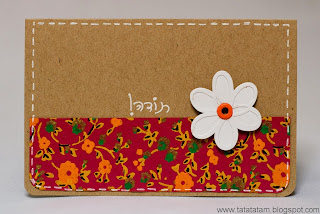 Here's a very simple thank you card I made with the help of the cuttlebug. What I like about it is the simplicity and the combination of Kraft paper and the white color, so much that I made the flower white on white. What do you think?